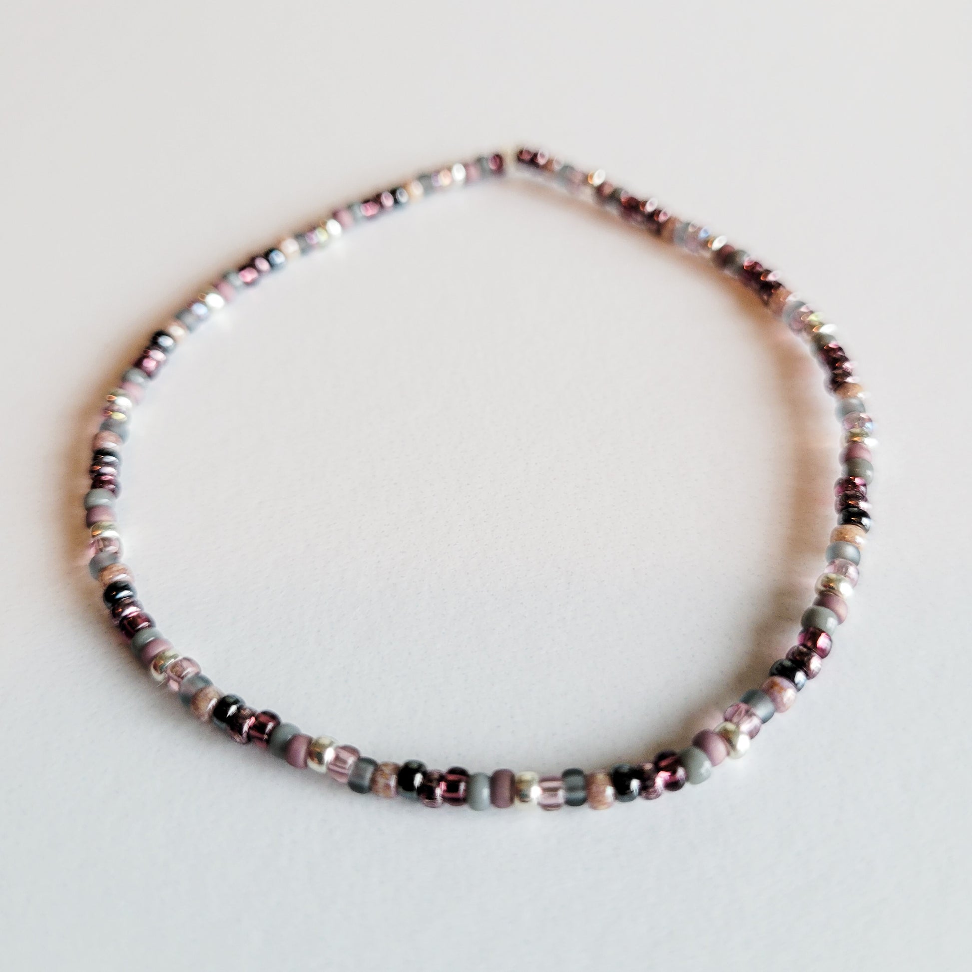 Add a touch of mysticism to every outfit with this colorful stretch bracelet! It features a mixed combination of colorful purple and clear seed beads that add a touch of depth and subtle sparkle. Perfect for any occasion!