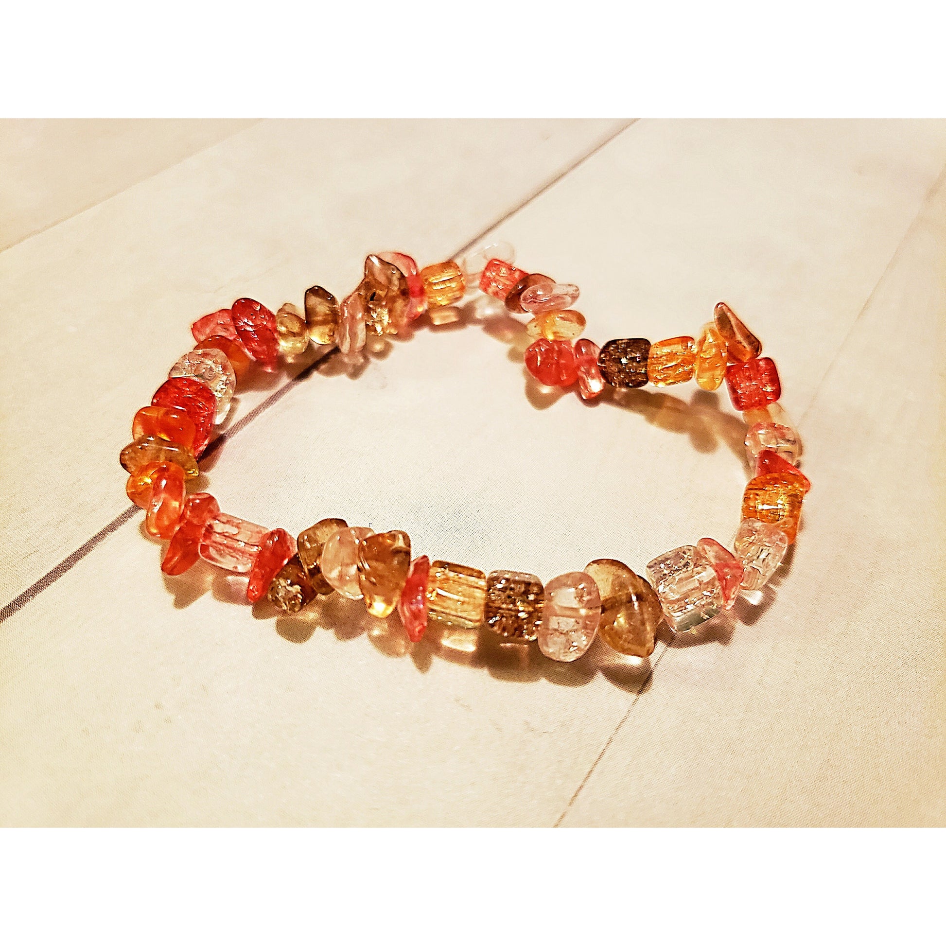 Let your wrist shine like the setting sun with the Sunset Stretch Bracelet! Crafted with different shapes of bead chips and inspired by the spectrum of a beautiful sunset, this bracelet will make your arm candy look hotter than a blast of summer heat. Get your glow on!